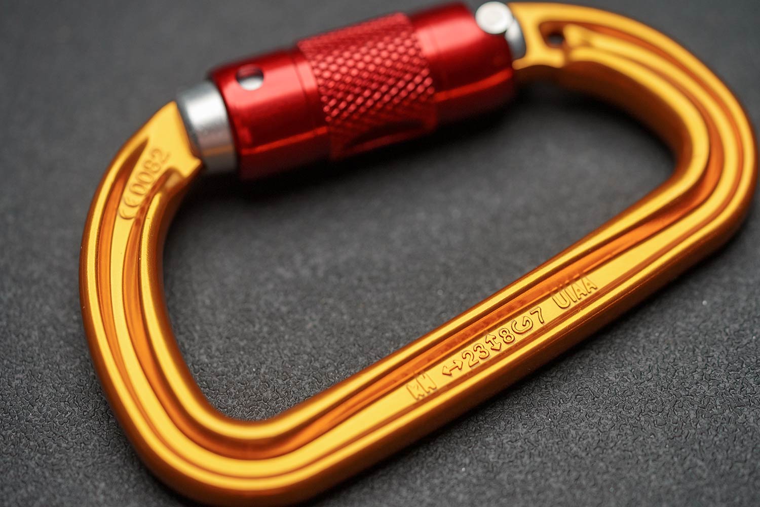 Highly versatile, lightweight, compact, D-shaped locking carabiner