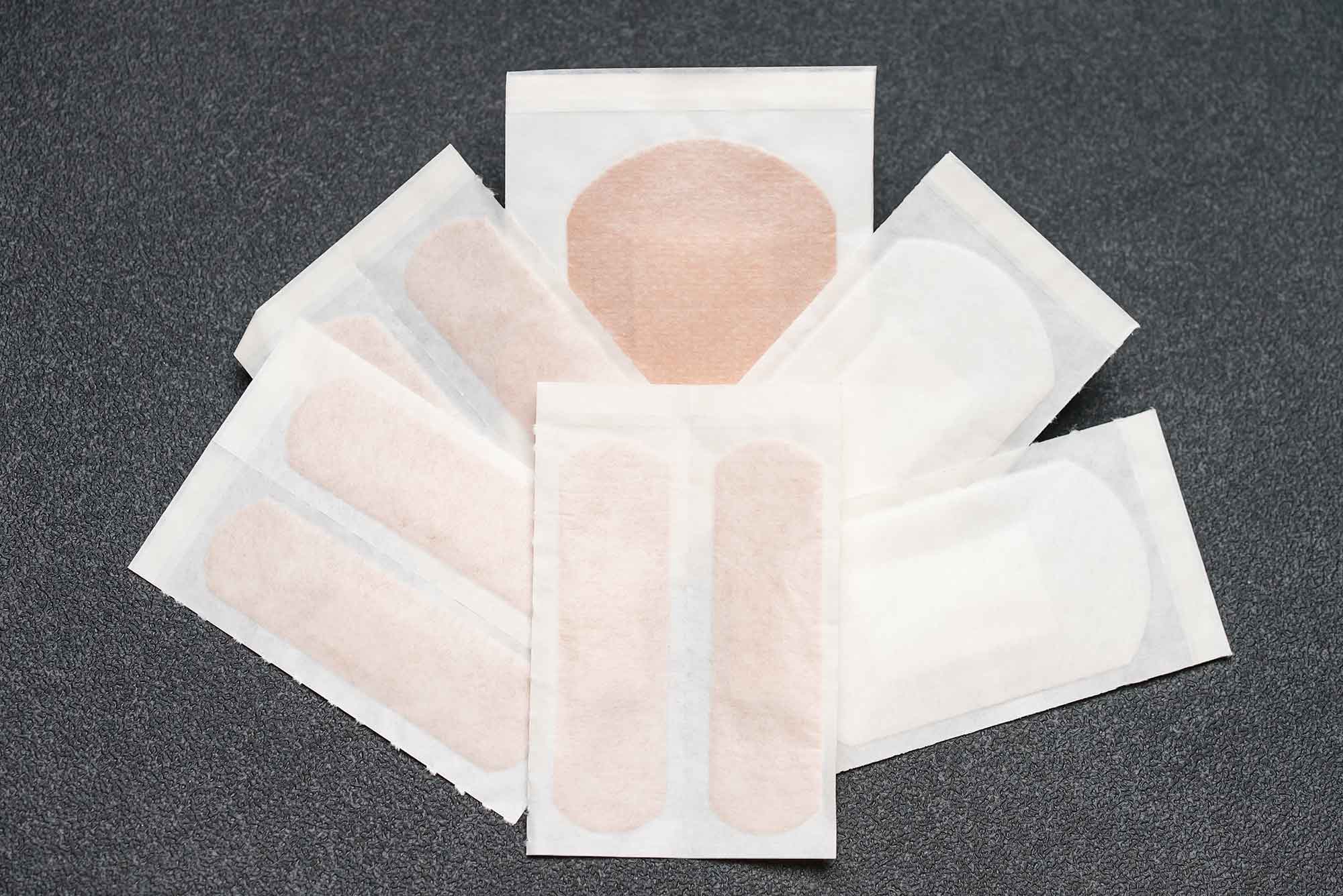 Plaster patch with 9 individually packed plasters in 3 different sizes.