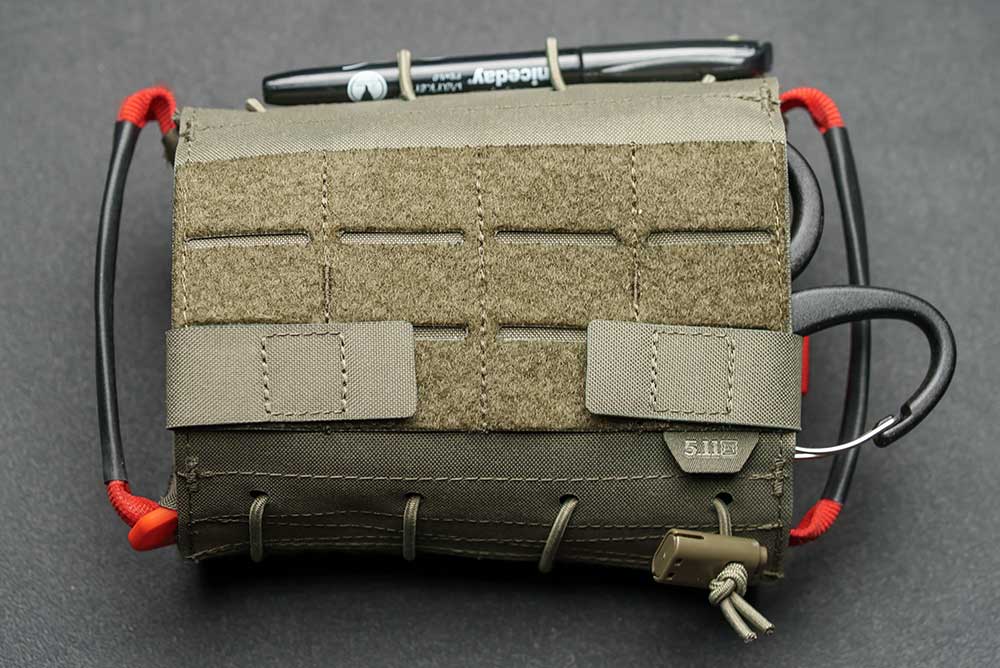 5.11:s UCR Flat IFAK-påse ger snabb åtkomst till livräddande föremål. Den är utformad för ambidextrös användning, med avtagbara komponenter och lättdragna handtag. Den låga profilen gör den enkel att bära i ett bälte eller en ryggsäck och den kan fästas med MOLLE eller kardborreband . Den har också plats för sax och extra utrustning. Perfekt för snabb åtkomst till IFAK.